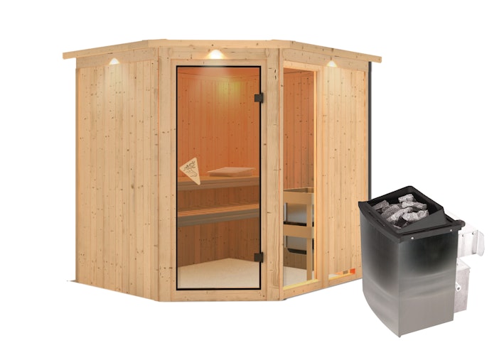Karibu Sauna Fiona 2 mit Eckeinstieg 68 mm inkl. gratis Sauna-Zubehörset im Wert von 234,94 €
