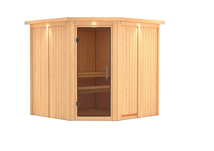 Karibu Sauna Jarin mit Eckeinstieg 68 mm inkl. gratis 9 kW Bio-Saunaofen im Wert von 719 €
