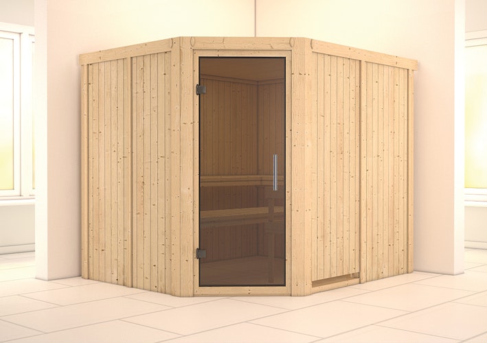 Karibu Sauna Malin mit Eckeinstieg 68 mm