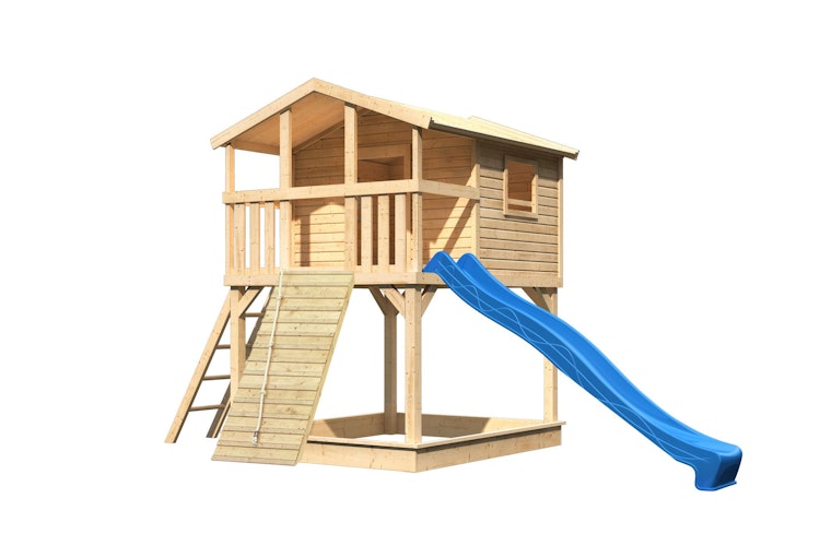 Karibu Akubi Stelzenhaus Benjamin mit Rutsche und Holzrampe