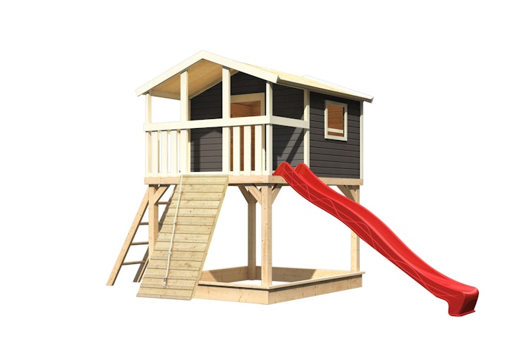 Das Karibu Akubi Stelzenhaus Benjamin in zwei Farben überzeugt mit extrem hoher Stabilität und langer Haltbarkeit. Mit dem Spielhaus schaffen Sie ein Spieleparadies für Ihre Kinder. Optional naturbelassen oder in terragrauer Behandlung erhältlich. Bei diesem Set ist eine Rutsche in Wunschfarbe, ein Sandkasten sowie eine Holzrampe inklusive.