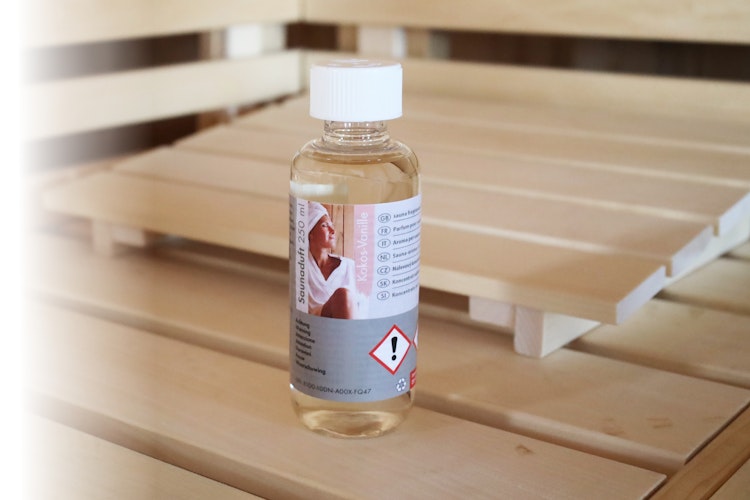 Einige Spritzer Sauna-Duft-Konzentrat nach Bedarf dem Aufgusswasser zugeben und kurz durchmischen.