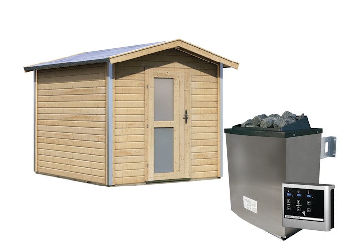Karibu Bosse 1 - 38 mm Gartensauna mit Vorraum und Satteldach inkl. gratis 9 kW Bio-Saunaofen im Wert von 879,99 €
