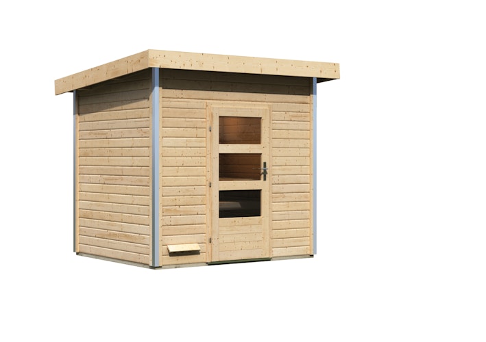 - Bitte denken Sie daran, den Fußboden mitzubestellen, falls dieser nicht im Standard-Lieferumfang enthalten ist. Bei Gartensaunen bleibt der Boden im Sauna-Raum unbehandelt.