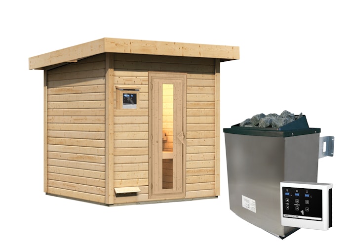 - Bitte denken Sie daran, den Fußboden mitzubestellen, falls dieser nicht im Standard-Lieferumfang enthalten ist. Bei Gartensaunen bleibt der Boden im Sauna-Raum unbehandelt.