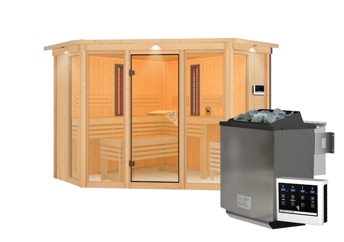 Karibu Multifunktions-Sauna Asta inkl. Infrarotstrahler mit Eckeinstieg 68 mm