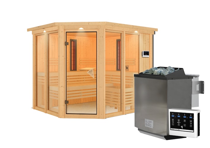 Karibu Multifunktions-Sauna Ava inkl. Infrarotstrahler mit Eckeinstieg 68 mm