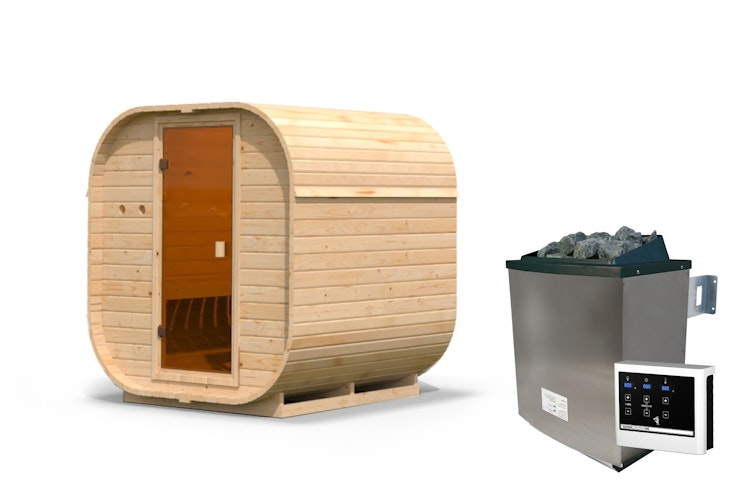 Karibu Saunahaus Fasssauna Quadro 1 - 38 mm. Die Karibu Fasssauna Quadro 1 überzeugt mit ihrem praktischen Steck-Schraubsystem, das eine unkomplizierte Montage ermöglicht. Mit Massivholzfußboden, Ofenschutz und zwei komfortablen, 57 cm breiten Bänken bietet sie höchsten Komfort und Sicherheit. Die besondere Form runden das Saunaerlebnis stilvoll ab.