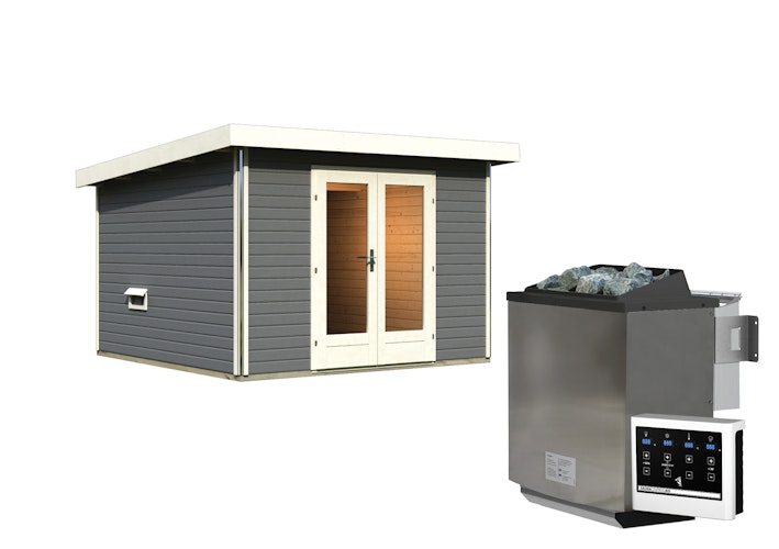 Karibu Saunahaus Mainburg 1 mit Vorraum - 38 mm inkl. gratis 9 kW Bio-Saunaofen im Wert von 719 €
