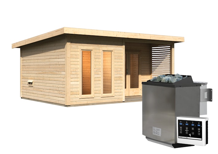 Karibu Saunahaus Mainburg 5 mit Vorraum - 38 mm inkl. gratis 9 kW Bio-Saunaofen im Wert von 719 €