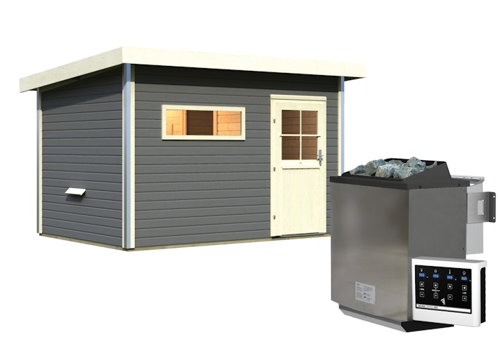 Karibu Saunahaus Skrollan 2 mit Vorraum terragrau