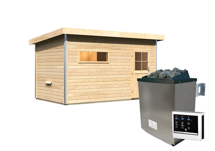 Karibu Gartensauna Pultdach Saunahaus Skrollan 3 mit Vorraum