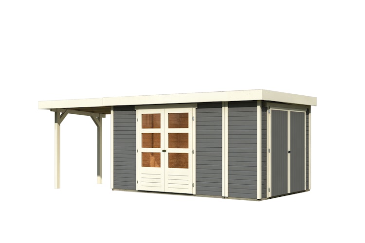 Karibu Woodfeeling Gartenhaus Retola 2/3/4/5/6 inkl. Anbauschrank u. 240 cm Schleppdach