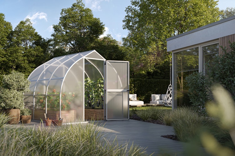 Das Gewächshaus Rhodo ist das Basismodell der Firma KGT und ausgestattet mit einer 6-mm-ISO-Hohlkammerplatten-Verglasung. Das Gewächshaus aus Aluminiumprofilen und bruchfestem Polycarbonat erzielt beste Stabilität und bietet ein exzellentes Preis-Leistungs-Verhältnis.