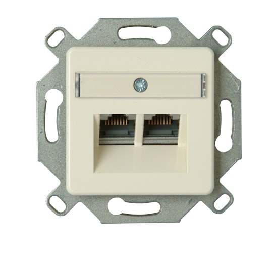 Netzwerkanschlussdose CAT6, mit Schrägauslass, LSAAufleger, 2 getrennte Steckanschlüsse 2x8(8)-polig, Unterputz
