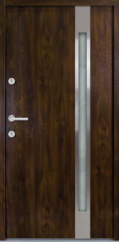 Das Modell Hagen setzt sich durch einen leicht versetzten Glasausschnitt von anderen Nebeneinganstüren ab. Das satinierte Glas wir von einem langen Edelstahlstreifen umrandet und setzt so besondere Akzente. Die moderne Nebeneingangstür können Sie durch die Wahl unserer vier Farben anthrazit, weiß, Golden Oak und Nussbaum individuell designen.