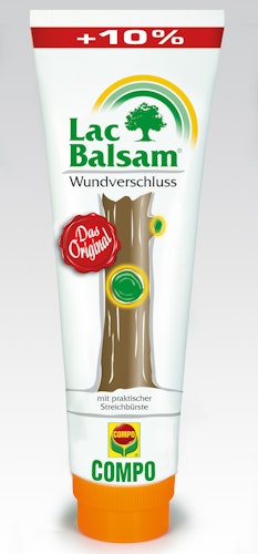 Der COMPO Lac Balsam ist ein rindenfarbiges Wundverschlussmittel zur Behandlung von Baumwunden an Zier- und Obstgehölzen. Jeder Gehölzschnitt ist eine Wunde für den Baum, welcher Pflege benötigt. COMPO Lac Balsam verhindert das Eindringen von Keimen wird durch die Behandlung mit . Die Paste tropft nicht, deckt hervorragend, ist schnell trocknend und bildet eine dauerhaft-elastische Schutzschicht auf der Wunde. Die Paste ist atmungsaktiv, witterungsbeständig und fördert die Wundheilung und Überwallung.