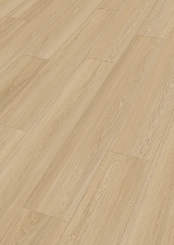 Seine wasserfeste Rigid-Vinyl-Trägerplatte macht ihn widerstandsfähig gegen Feuchtigkeit, wodurch er optimal für Wohn- und Feuchträume wie Küchen und Bäder geeignet ist. Die mehrlagige, strapazierfähige Vinyloberfläche mit einer robusten Nutzschicht von 0,55 mm schützt zuverlässig vor Kratzern und erleichtert zugleich die Pflege. Zudem verfügt der Boden über einen integrierten Schallschutz, in Form eines 1 mm druckstabilen IXPE-Schaum, zur Reduzierung des Trittschalls.