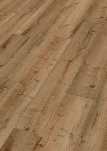Seine wasserfeste Rigid-Vinyl-Trägerplatte macht ihn widerstandsfähig gegen Feuchtigkeit, wodurch er optimal für Wohn- und Feuchträume wie Küchen und Bäder geeignet ist. Die mehrlagige, strapazierfähige Vinyloberfläche mit einer robusten Nutzschicht von 0,55 mm schützt zuverlässig vor Abnutzung und erleichtert zugleich die Pflege. Zudem verfügt der Boden über einen integrierten Schallschutz, in Form eines 1 mm druckstabilen IXPE-Schaum, zur Reduzierung des Trittschalls.