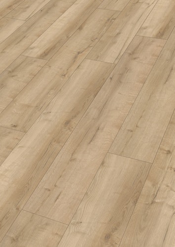 Seine wasserfeste Rigid-Vinyl-Trägerplatte macht ihn widerstandsfähig gegen Feuchtigkeit, wodurch er optimal für Wohn- und Feuchträume wie Küchen und Bäder geeignet ist. Die mehrlagige, strapazierfähige Vinyloberfläche mit einer robusten Nutzschicht von 0,55 mm schützt zuverlässig vor Kratzern und erleichtert zugleich die Pflege. Zudem verfügt der Boden über einen integrierten Schallschutz, in Form eines 1 mm druckstabilen IXPE-Schaum, zur Reduzierung des Trittschalls.