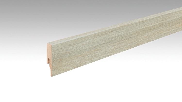 Die MEISTER Fußleiste Profil 20 PK Drift 20219 - 2380 mm besticht durch seine graue Holzoptik und verleiht jedem Raum einen harmonischen Übergang zwischen Boden und Wand. Ideal für die Meister Designböden.