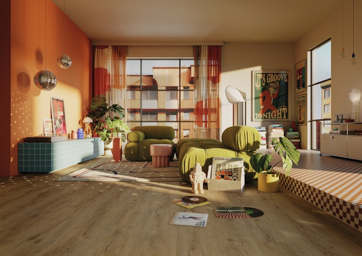 Selbst bei hoher Beanspruchung bleibt der Rare groove widerstandsfähig und formstabil. Seine wasserfeste Konstruktion macht ihn zur idealen Lösung für Feuchträume oder offene Wohnbereiche, und die integrierte Trittschalldämmung sorgt für spürbar leisere Schritte. Ob in Familienhaushalten, Büros oder Boutiquen – dieser Boden überzeugt durch Langlebigkeit und ein angenehmes Laufgefühl bei jeder Nutzung.