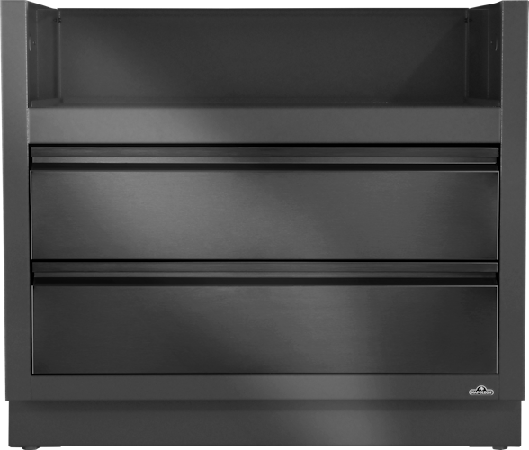 Speziell für den Built-In Prestige® PRO 665 Gasgrillkopf gefertigt, zeichnet sich dieses mattschwarze, pulverbeschichtete Galvanneal-Gehäuse durch erhöhte Haltbarkeit dank des zweischichtigen Pebble-Finish-Systems aus. Zwei Schubladen aus Edelstahl sind auf leichtgängigen Schienen montiert und bieten praktischen Stauraum unter dem Grill.