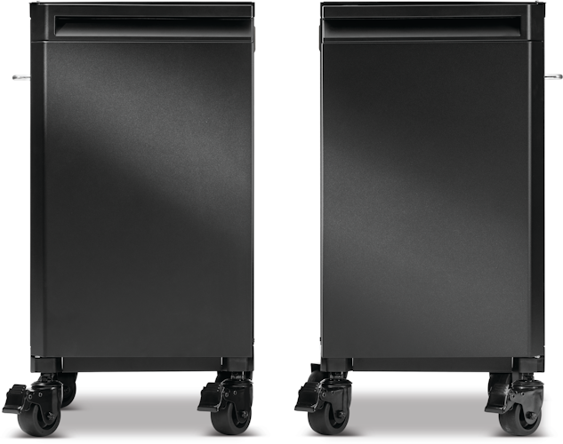 Praktischer Stauraum und ganz viel Style für Ihr Grillsystem: die Phantom Prestige® Seitenschränke. Diese beeindruckenden mattschwarzen, frei beweglichen Schränke können nahtlos in Ihren Grill eingefügt werden, rasten dort fest ein und lassen sich durch die vier leichtgängigen, fixierbaren Lenkrollen ganz leicht im Ganzen bewegen. In der verdeckten oberen Schublade haben Sie die wichtigsten Arbeitshilfen schnell zur Hand. Was Sie brauchen, ist nie mehr als eine Armlänge entfernt. Im Inneren sorgen ein Stauraumteiler mit intelligentem Design und integrierte Besteckhaken ganz nach Wunsch für Ordnung. So ist der Grillbereich immer aufgeräumt und effizient. Ob beim Vorbereiten, Grillen oder Aufräumen – mit diesen Seitenschränken können Sie ganz leicht Ordnung halten und stilvoll grillen.