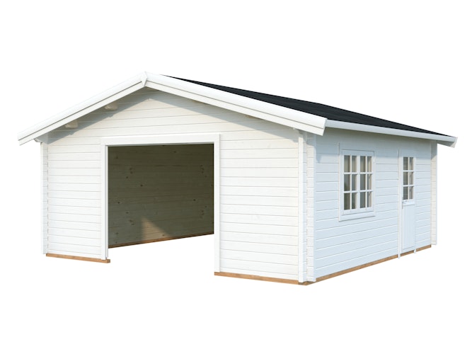 Die Palmako Garage Roger 27,7 m² - 70 mm - ohne Tor ist auch mit einem Holztor oder Sektionaltor erhältlich (siehe Zubehör). Dieses Modell kommt mit viel Platz für Ihr Fahrzeug, einem seitlichen Eingang und einem Doppelfenster mit 3-9-3 mm Doppelverglasung. Dieses Modell eignet sich aufgrund des besonderen Entwurfes, neben dem eigentlichen Zweck als Garage, auch als Arbeits-, Lager- oder Vorratsraum.