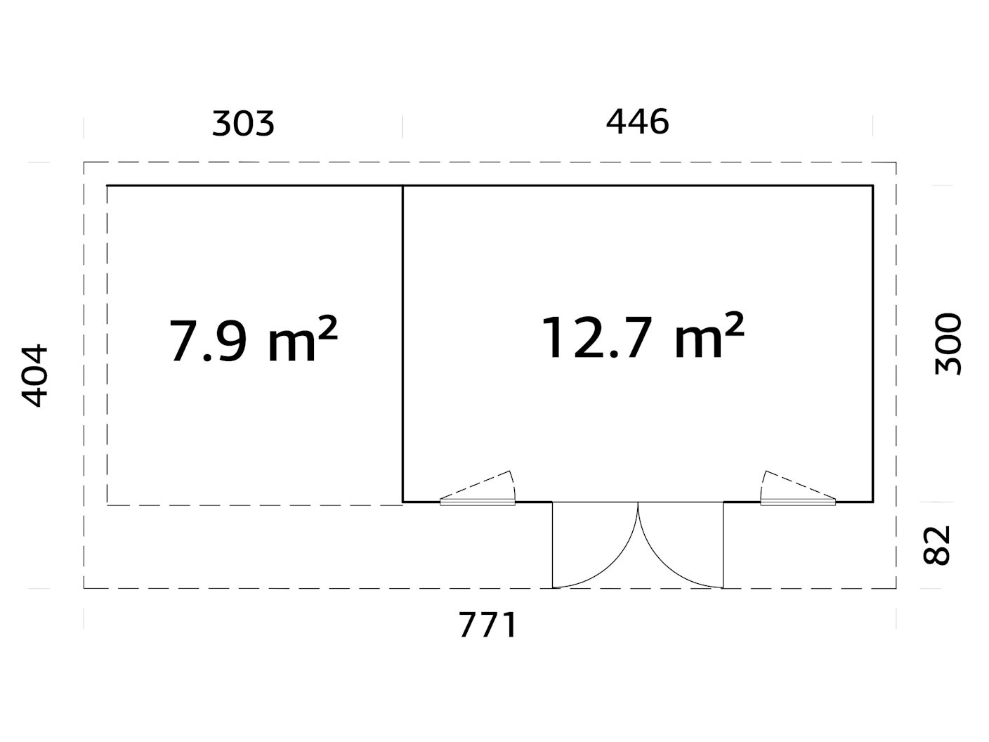 | Wandaußenmaße (BxT) | 771 x 404 cm |