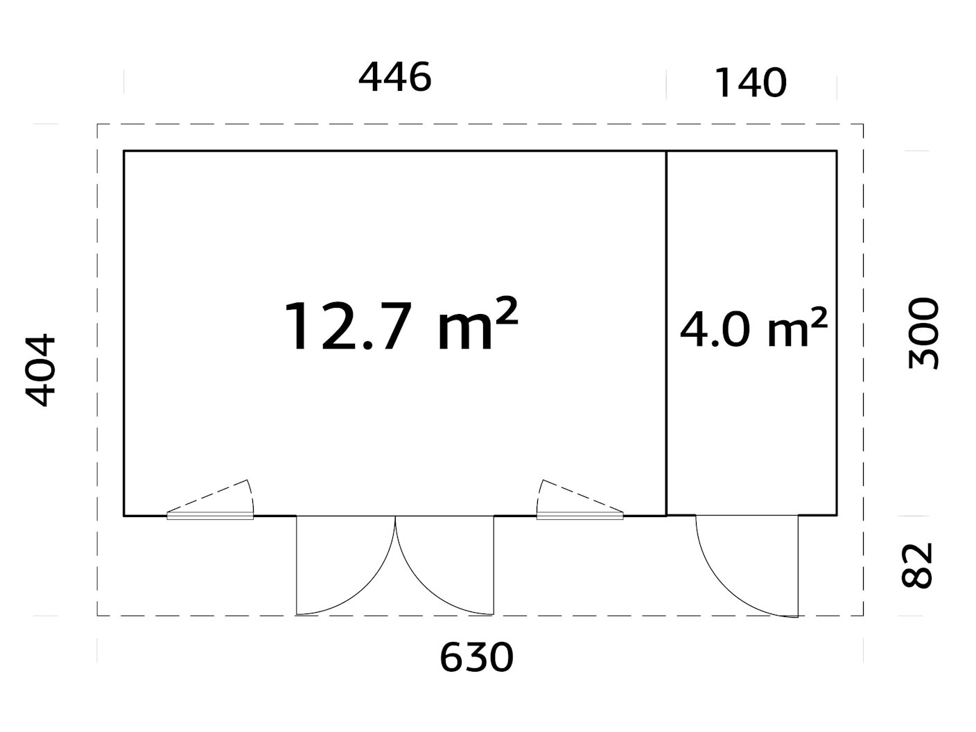 | Wandaußenmaße (BxT) | 630 x 404 cm |