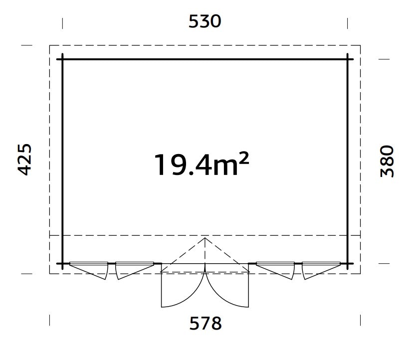 | Wandaußenmaße (BxT) | 530 x 380 cm |