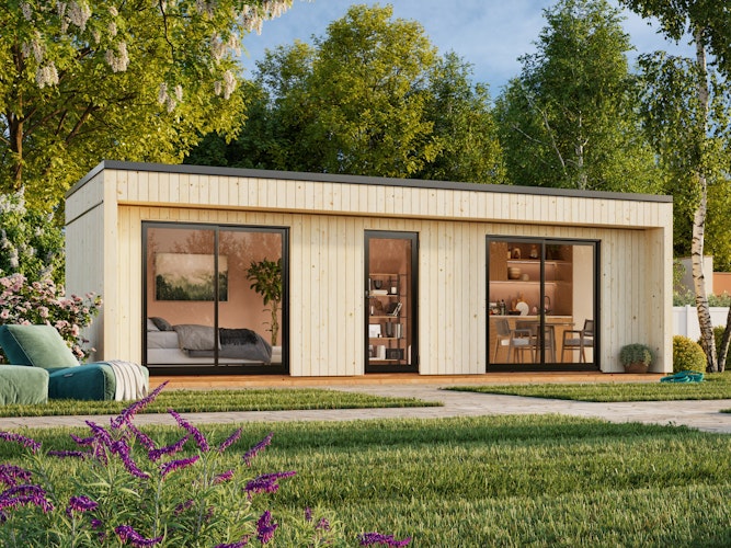 Das Palmako Gartenhaus Johanna 22,4 m² - 160 mm mit Alu-Schiebe- und Flügeltüren mit Doppelverglasung sticht durch schlichtes Design und Modernität hervor. Große Glasflächen sorgen für viel Licht, während Alu-Schiebe- und Flügeltüren mit Doppelverglasung angenehmen Zugang und gute Wärme- sowie Schalldämmung bieten. Robust, langlebig und vielseitig nutzbar als Rückzugsort oder flexibler Arbeitsbereich im Freien.