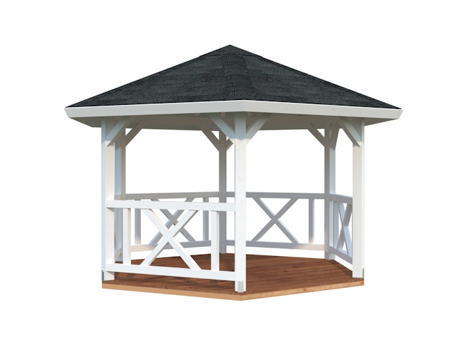Der Palmako Pavillon wird in gewünschter Ausführung geliefert. Eine Dacheindeckung und der Fußboden gehören nicht zum Lieferumfang (siehe Zubehör). Alle angegebenen Maße sind ungefähre Abmessungen, Maßtoleranzen bis zu 2 % sind produktionstechnisch möglich.