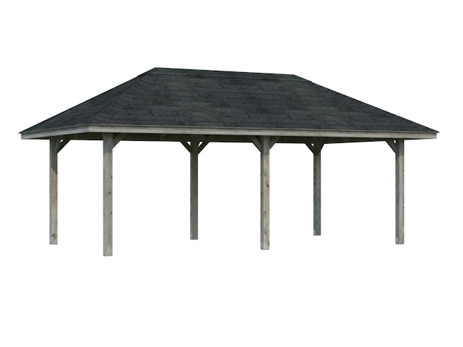Der Pavillon wird in naturbelassener Ausführung (unbehandelt) geliefert. Eine Dacheindeckung gehört nicht zum Lieferumfang (siehe Zubehör). Alle angegebenen Maße sind ungefähre Abmessungen, Maßtoleranzen bis zu 2 % sind produktionstechnisch möglich.