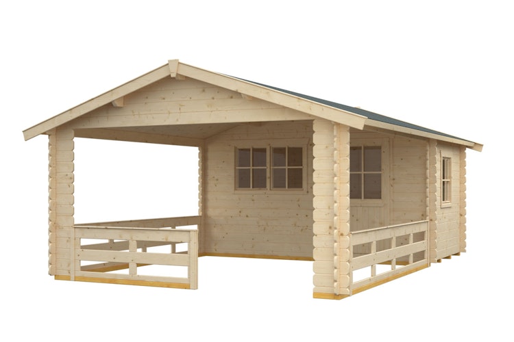380 cm x 363 cm + Abstellraum 380 cm x 250 cm (Größe 3) - 28 mm Blockbohlen für die Wände