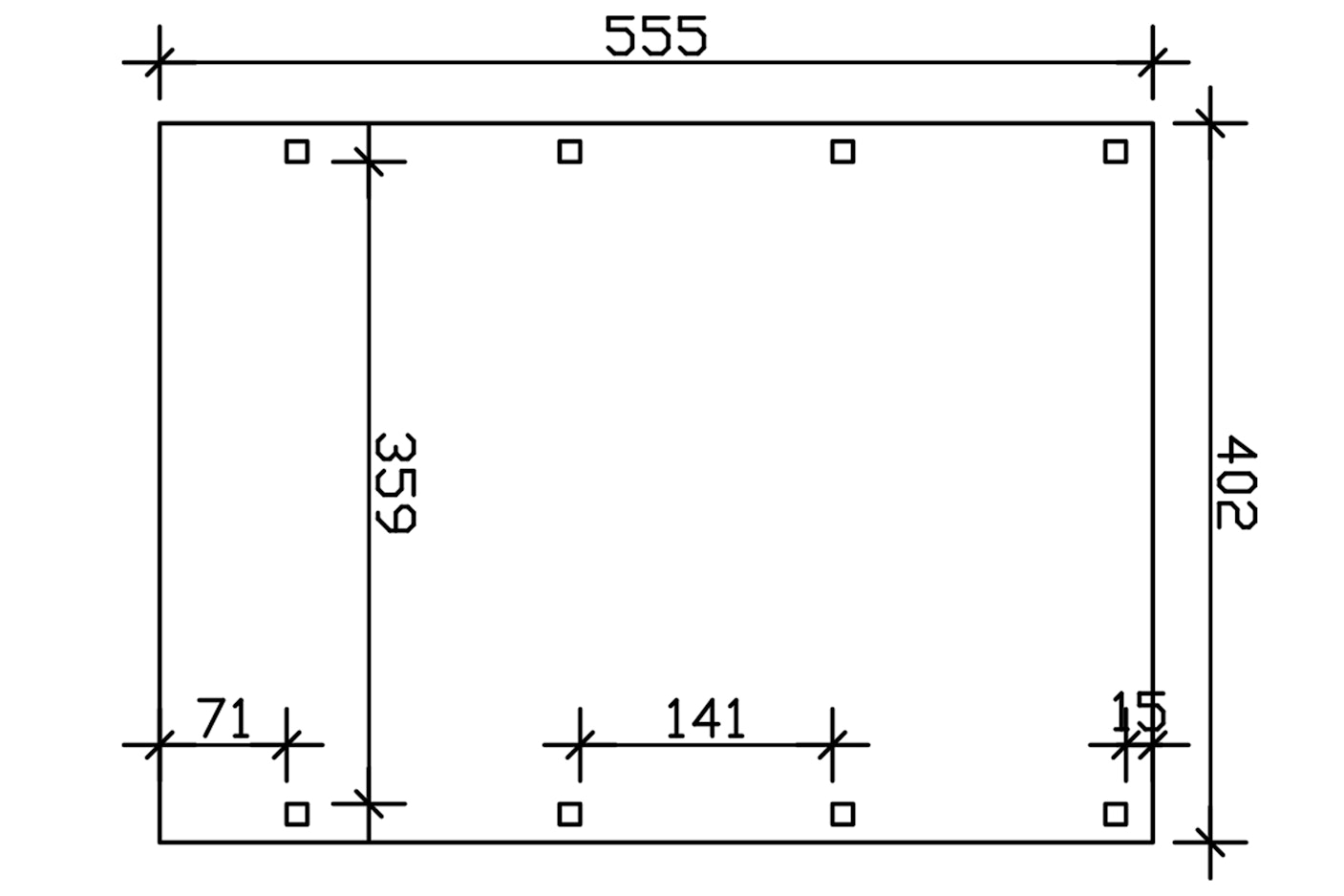 | Breite x Länge (überdachte Fläche) | 402 x 555 /708 cm (Größe 1/2) |
