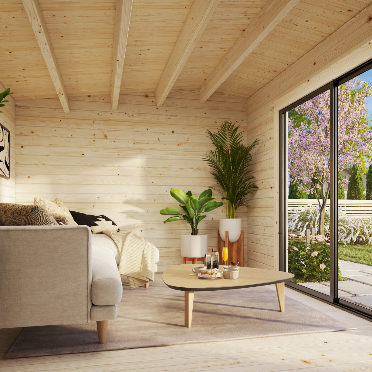 Dein Traum-Gartenhaus kannst du so gestalten, dass es das ganze Jahr über Freunde und Familie willkommen heißt. Eine stilvolle Sitzecke mit bequemen Polstermöbeln, kuscheligen Kissen und Plaids oder ein großer Holztisch bilden den Mittelpunkt. In den warmen Sommermonaten öffnen sich die Fenster zu deinem Garten und gewähren einen tollen Blick ins Grüne. Im Herbst und Winter sitzt du hier vor Kälte geschützt im Warmen.