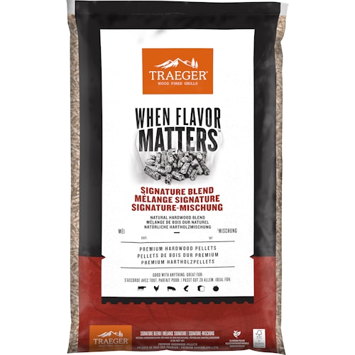 Unsere Hartholzpellets, Rubs und Saucen passen gut zu allem, aber Traeger Signature Blend-Holzpellets passen besonders gut zu: