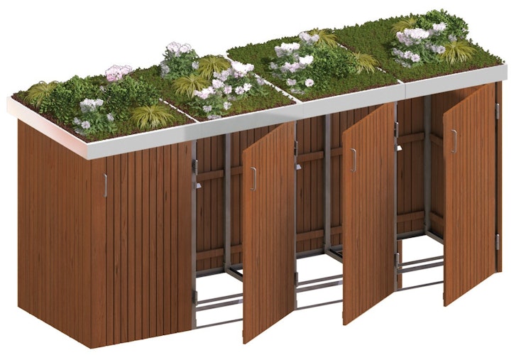 Das BINTO Mülltonnenbox System ist optimal geeignet, um Ihre Mülltonnen zu verstecken. Sie ist für Mülltonnen bis 240 Liter Inhalt geeignet. Das Mülltonnenbox System kann nachträglich noch erweitert werden, so dass beliebig viele Mülltonnen nebeneinander untergebracht werden können.