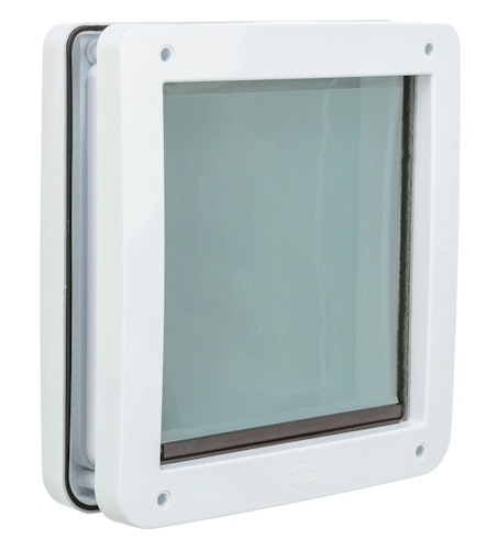 TRIXIE 2-Wege Freilauftür für Hunde, mit Tunnel, S–M: 30 × 36 cm, weiß