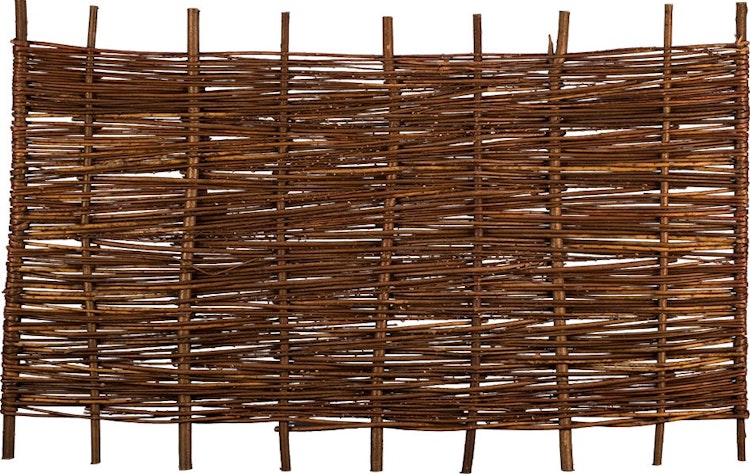 Der ASO-Weidengeflechtzaun von T&J ist aus ölbehandelter Weide gefertigt und auf Haselnussruten geflochten.