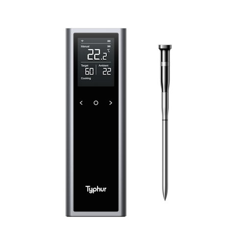 Dank der hochpräzisen Temperaturfühler gelingen Fleisch, Fisch und andere Speisen punktgenau, während die intuitive App volle Kontrolle über Garzeiten, Temperaturen und Benachrichtigungen bietet. Die robuste Bauweise und zuverlässige Technik machen die Typhur Sync Series sowohl für den privaten Einsatz als auch für semi-professionelle Küchen zur idealen Lösung.