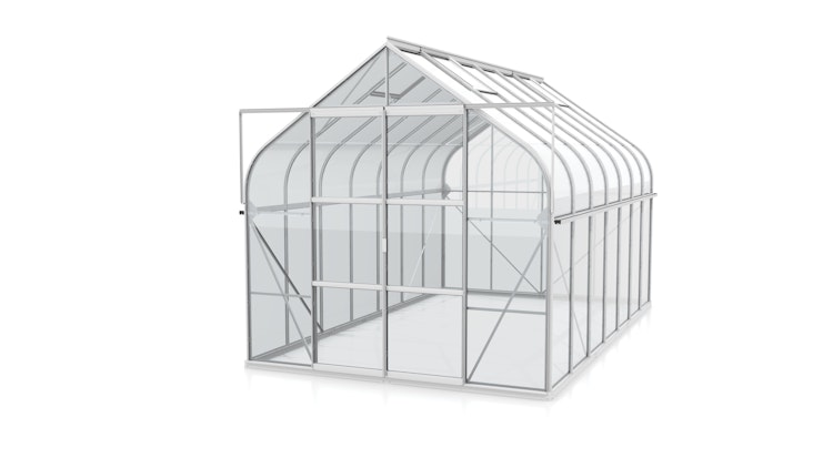 Das elegante, formschöne Aluminiumgewächshaus ist ein Schmuckstück für jeden Garten. Mit seinem seitlich abgerundeten Dach fügt es sich perfekt ins Landschaftsbild ein und sorgt das ganze Jahr für frische Kräuter, gesundes Gemüse und blühende Pflanzen.