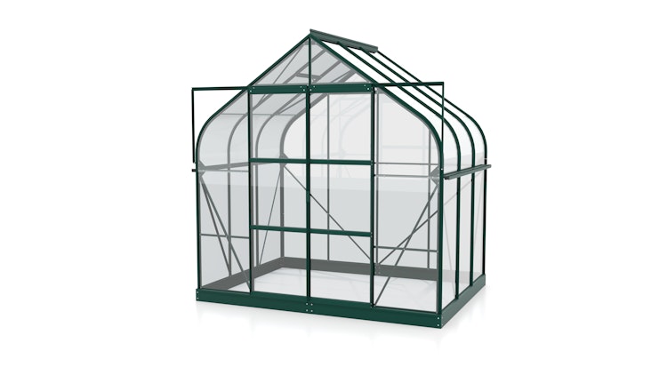 Das elegante, formschöne Aluminiumgewächshaus ist ein Schmuckstück für jeden Garten. Mit seinem seitlich abgerundeten Dach fügt es sich perfekt ins Landschaftsbild ein und sorgt das ganze Jahr für frische Kräuter, gesundes Gemüse und blühende Pflanzen.