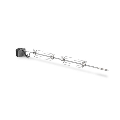 Der Drehspieß wurde mit einen elektrischem Motor und Gegengewicht für ein gleichmäßiges Drehen des Grillguts ausgestattet, welches Ihren Grill um viele neue Einsatzmöglichkeiten erweitert.