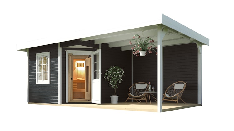 Weka Blockbohlen Saunahaus Salo 2 (mit 303 cm Anbau) inkl. Elementsauna 28/68 mm