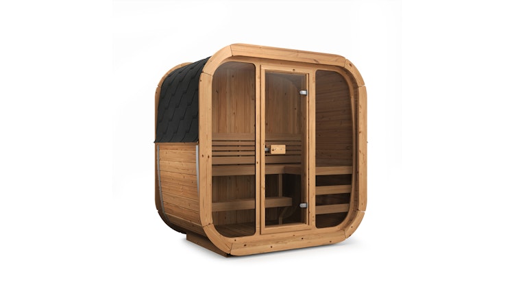Die Weka Design Saunahaus Serie Laadi besticht durch markantes Design und hochwertige Handwerkskunst. Geschwungene Linien, eine großzügige Glasfront und warmes Holz sorgen für eine moderne, einladende Atmosphäre. Laadi 1 ist kompakt und stilvoll mit einer Tiefe von 125 cm für ein bis zwei Personen, ideal für kleine Gärten oder Terrassen, ohne das Saunaerlebnis zu beeinträchtigen.