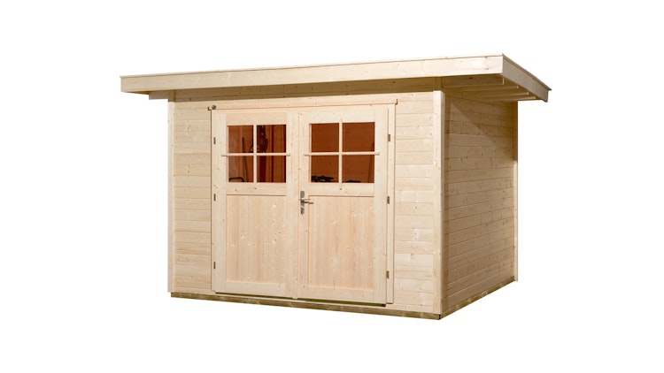 In der naturbelassenen Ausführung können Sie Ihr neues Gartenhaus ganz nach Ihren Wünschen gestalten. Damit Sie lange Freude daran haben, empfehlen wir Ihnen, es entsprechend zu schützen. Während der Montage sollten Sie darauf achten, dass Nut und Feder mit einem Holzschutzmittel gegen Fäulnis und Verwitterung gestrichen werden. Der Außenanstrich sollte dann gleich nach der Montage erfolgen. Wir raten Ihnen hierfür, zuerst eine Grundierung aufzubringen, danach eine offenporige Lasur. Dadurch wird das Holz über lange Zeit haltbar.