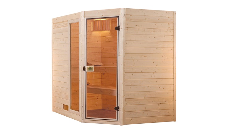 Überzeugen Sie sich von den Qualitätsmerkmalen der 68 mm Weka Massivholzsauna 539 / Valida Eck GTF Gr. 3